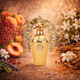 Alors que les agrumes se dissipent, une élégante fleur d'oranger s'épanouit en cœur, rehaussée par une douce essence de liqueur. Cette couche florale ajoute de la profondeur et de la sophistication, équilibrant la douceur avec un caractère floral gracieux.